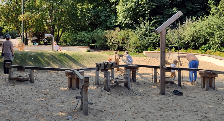 它专为儿童打造:孩子可通过操作杠杆、拉动链条等方式与沙坑互动,在嬉玩中锻炼动手能力与协作意识,家长也可陪同参与,是亲子陪伴的欢乐场。设备采用防腐原木材质,耐候性强且维护便捷,适配社区公园、亲子乐园、郊野营地的沙坑场景,既能提升自然游乐的体验感,也能吸引亲子客群到访,激活户外空间的活力。