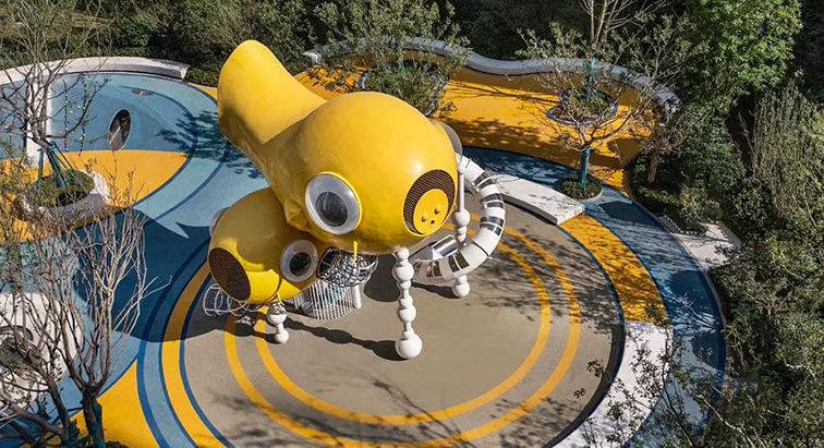 高饱和度撞色设计极具视觉冲击力,全圆角环保材质与防滑地面兼顾趣味与安全,适配 3-10 岁儿童。作为场地核心打卡点,它既能让孩子在探索中锻炼体能,也能提升空间颜值与亲子客群吸引力。