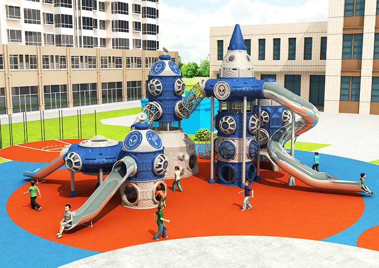 全圆角环保材质与防滑阶梯兼顾耐用性与安全性,适配 3-12 岁儿童。模块化设计可灵活扩展,高辨识度的太空元素既能激发孩子的想象力与探索欲,也能成为场地核心打卡点,有效提升亲子客群粘性与空间活力。